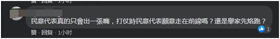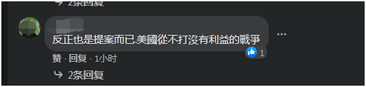 在斯科特提出参议院版本后,社交媒体上,也有台湾网友讽刺说,“反正也(只)是提案而已,美国从不打没有利益的战争”;也有人反问这些议员,他们真的只会出一张嘴,打仗时他们愿意走在前线吗?“还是举家先跑路?”也有网友称,“开战的时候,提案的这些人会上前线?”