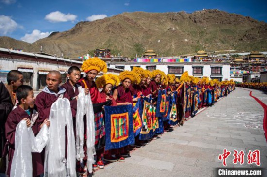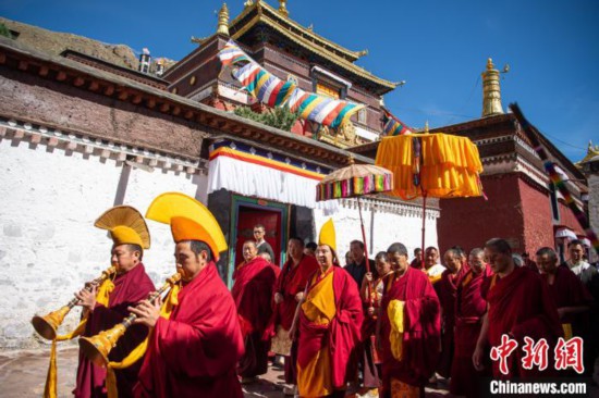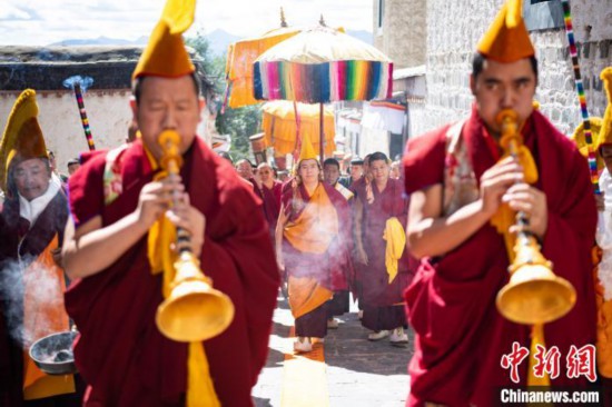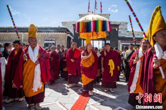 9月15日,扎什伦布寺僧众在寺内迎接十一世班禅。何蓬磊 摄