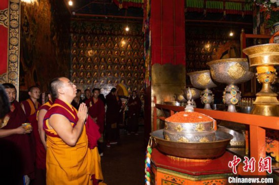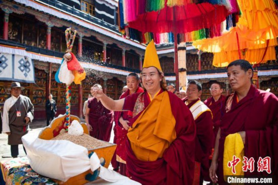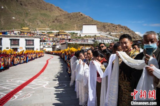 9月15日,十一世班禅回抵扎什伦布寺,接受僧众敬献的切玛。何蓬磊 摄