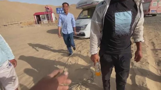 小粉了解到,这是一家经营越野车、滑沙等项目的越野基地,游客的房车在基地的公厕前发生陷车,而前来阻拦拖车的正是基地的员工,原因是小粉的义务拖车,挡了他们的拖车生意。