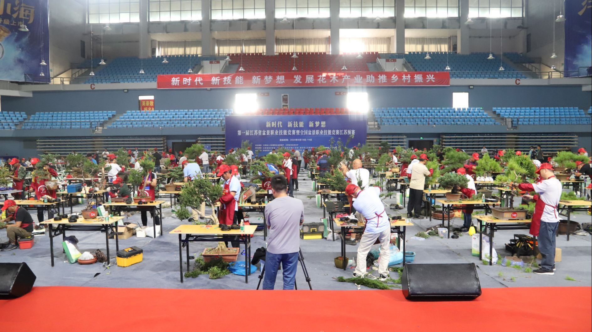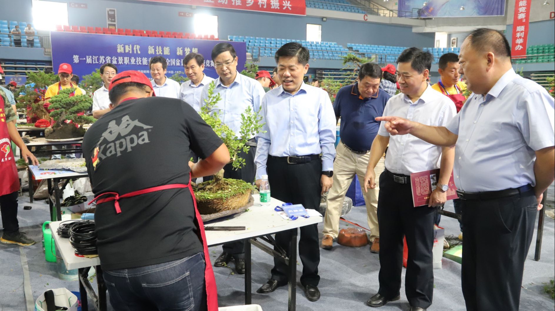 9月19日,江苏省首届盆景职业技能竞赛暨全国盆景职业技能竞赛江苏预赛实操比赛在沭阳县体育中心举行,来自全省各地级市13支参赛队共120余名选手参加了此次比赛。江苏省人社厅二级巡视员余强,沭阳县委副书记、县长彭伟,副县长孙其泉、邓衍明进行了现场观摩。