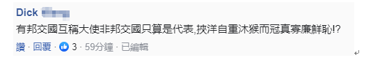 还有网友称,“有邦交国互称大使,非邦交国只算是代表,挟洋自重、沐猴而冠真寡廉鲜耻!?”
