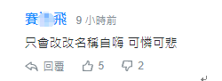 对此,有岛内网友在台媒评论区留言嘲讽,“只会改改名自嗨,可怜可悲。”