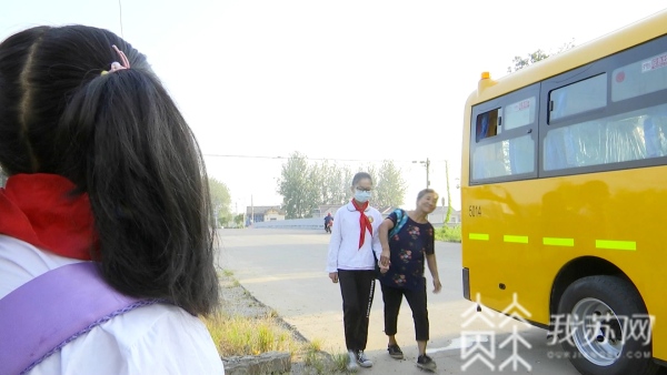 司机和跟车教师互测体温后,6点50,七辆校车驶出学校。10分钟后,其中一辆校车停在太平桥乘车点,这里有5名孩子需要乘坐校车。前来送孙女的曹显霞老人说,以前没有校车,每天接送孩子成了大难题。