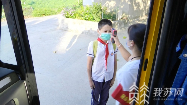 跟车老师为学生测体温,学生系好安全带后,校车启动,很快来到黑桥站点,这里只有一名孩子上车。王义平表示,这条线原来有11名学生乘车,今年减少为6人。为了保证这些孩子能够每天准时到校,学校和校车公司积极对接,把校车直接开到了他们家门口。