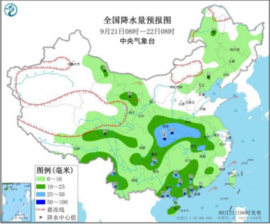 中国天气网讯 今明(9月21日至22日)两天,我国中东部地区迎来主要降水时段,并且大部地区将以稳定性降水为主。气温方面,受冷空气和降水影响,江淮、江南等地的气温仍然会明显偏低且持续。
