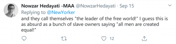 他们称自己为“自由世界的领袖”!我想这跟一群奴隶主说“所有人都平等”一样荒谬