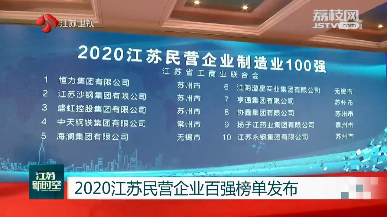 恒力集团、江苏沙钢集团、盛虹控股集团位列“2020江苏民营企业制造业100强”前三名;