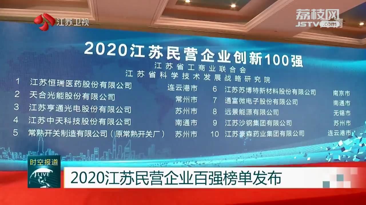 江苏恒瑞医药、天合光能、江苏亨通光电位列“2020江苏民营企业创新100强”前三名。