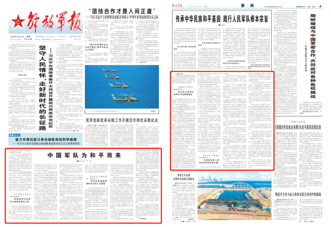 “中国军事实力不是为了示强,而是为了扶弱;不是为了战争,而是为了和平。”“中国的发展,是世界和平力量的壮大。”这些国际社会的评价,正是新时代中国军队作为的真实写照。