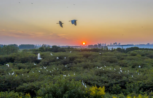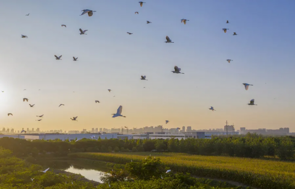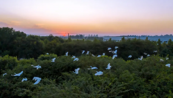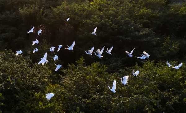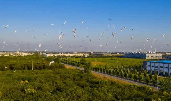 秋高气爽,泗洪经济开发区机械产业园白鹭成群,翩翩起舞,场面壮观。