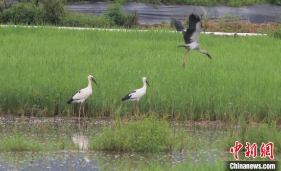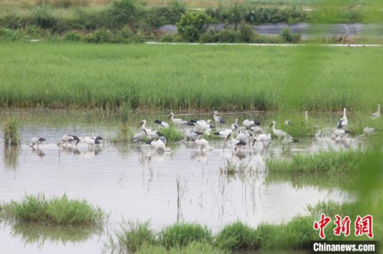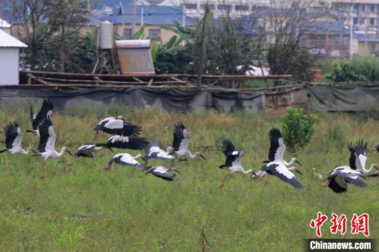 中新网普洱9月22日电 (何有刚)在云南省普洱市孟连县,一群钳嘴鹳自去年冬天到来后,不仅没有像往年一样离开,还带来了很多同伴,数量约达500只。为此,当地加强了对它们的保护。