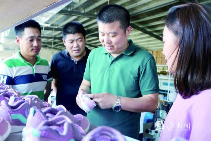 “我们在厂工人高峰期多达100多人,正常是60人左右,工人们都是来自关庙、保安、刘集、穿城几个乡镇,真的是家门口就业,平均每人一年收入至少5万元。”说这话的是一位身材魁梧,让人一见就感到“兵味”十足的退伍军人,他就是宿迁金泉鞋业有限公司总经理林敏,今年40岁。