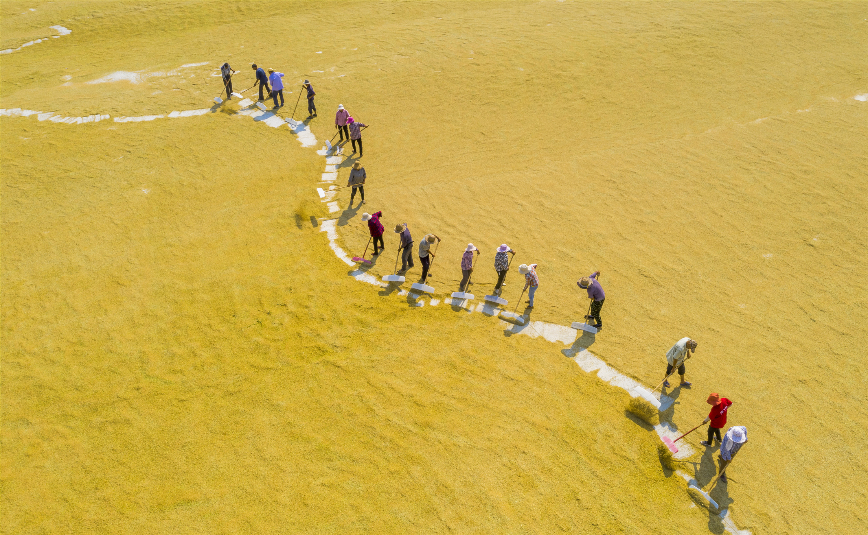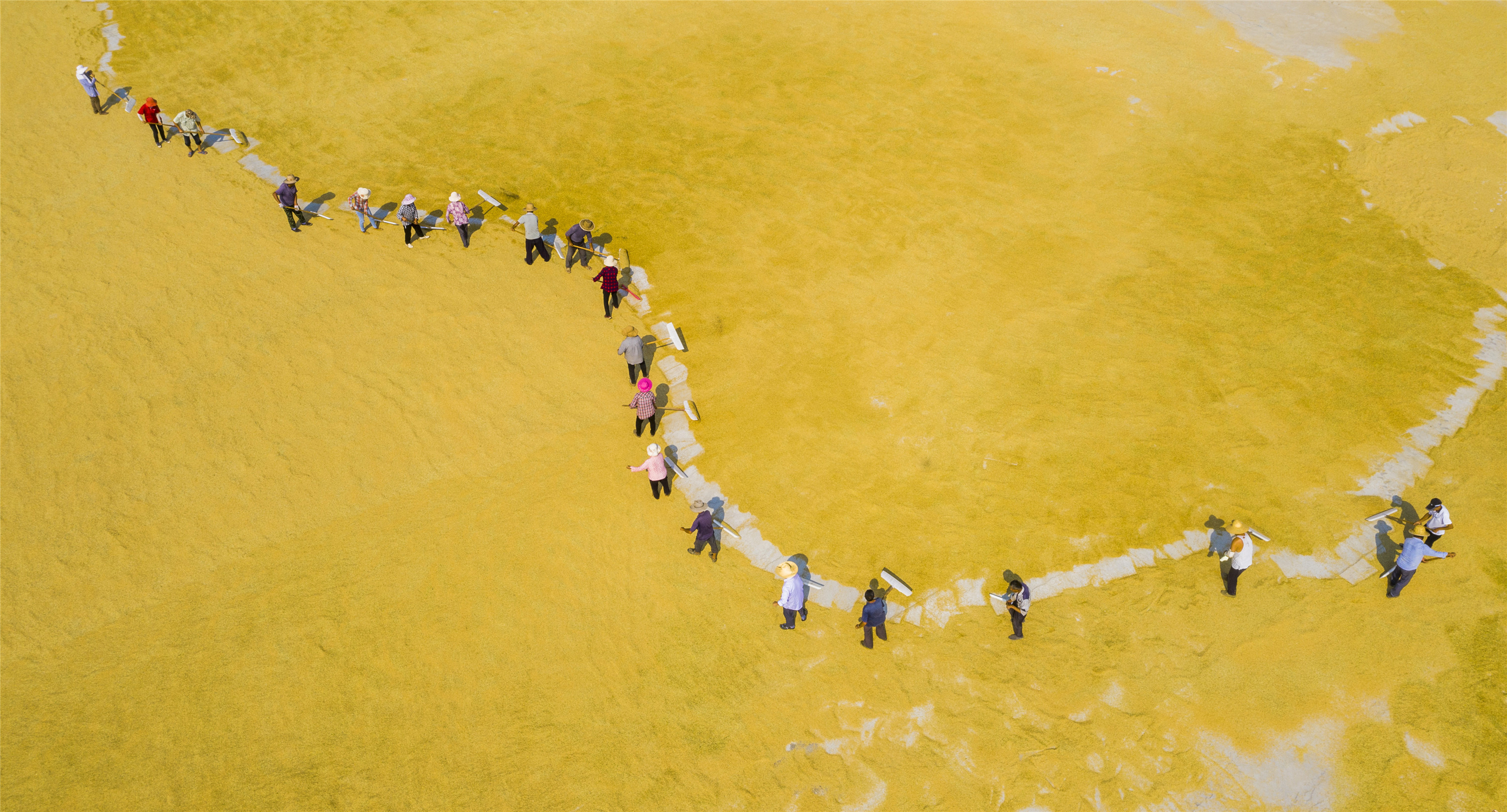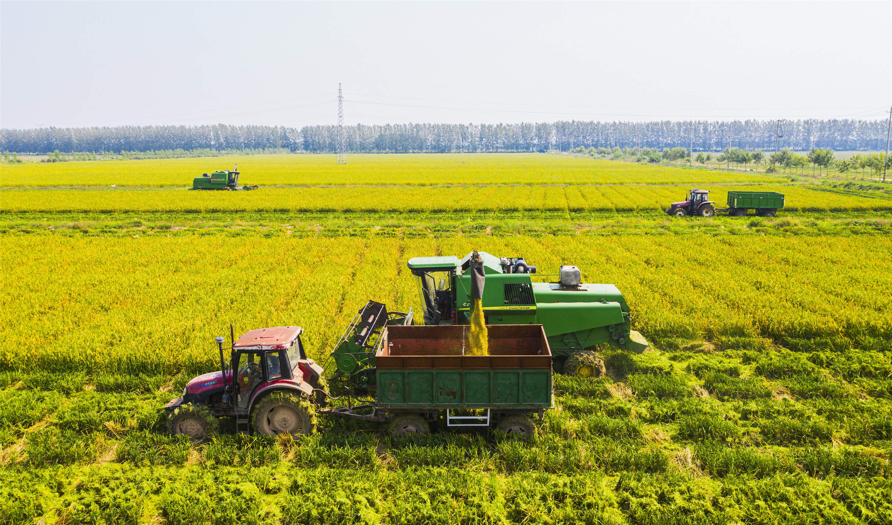 9月20日,江苏省宿迁市泗洪县石集乡一家庭农场7000亩制种水稻开镰收割,从而拉开了全县98万亩水稻收割序幕。无人机高空俯拍,一台台大型收割机在稻田间来回穿梭,场面蔚为壮观;金色的晒场,农民们正在紧张的晾晒稻谷,犹如一幅巨大的油画,美不胜收。