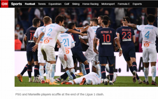 根据法新社、美国CNN、西班牙《阿斯报》的报道,此事起源于当地时间9月13日一场法国足球甲级联赛。当时,巴黎圣日耳曼和马赛队的球员在比赛中爆发了严重的冲突,并导致双方共5名球员被红牌罚下。马赛队最终以1比0的比分战胜了巴黎。