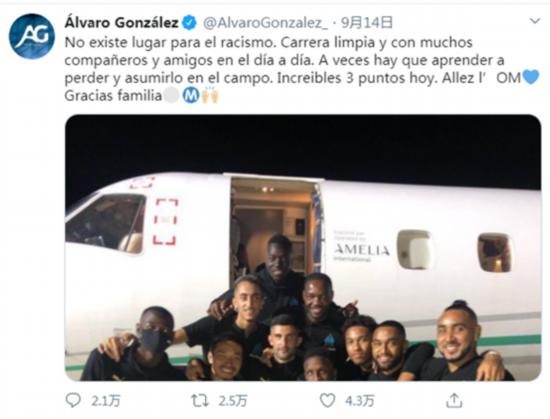 图为冈萨雷斯发帖否认自己辱骂内马尔,并认为内马尔应该学会接受输球