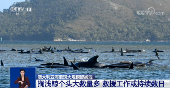 当地时间23日清晨,澳大利亚救援人员在塔斯马尼亚岛附近海域展开空中勘察,再次发现200头搁浅的巨头鲸,这使当地搁浅鲸数目增至大约470头。此前,当地时间21日,大约270头巨头鲸曾被发现搁浅。