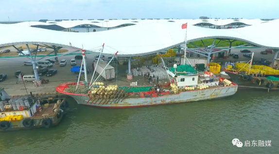 9月22日下午3点多,记者来到吕四渔港,只见一派忙碌景象。波光潋滟的环抱式港池内,层层叠叠的波浪式棚顶宛如奔腾的乐符,一艘艘刚刚靠港的渔船在码头整齐排列,船上的旗子随风飘扬,一阵阵鱼鲜味儿伴随着海风扑鼻而来。
