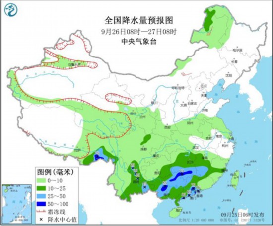 预计,未来三天(9月25日至27日)南方新一轮降雨过程再度开启,今天强降雨中心主要集中在西南以及江南西部地区,局地有暴雨。南雨北晴,北方气温将普遍回升,华北等地最高气温将逐渐回升至25℃左右,一派秋高气爽的景象。