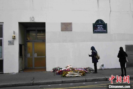 资料图:2020年1月7日,袭击事件五周年之际,在《查理周刊》巴黎总部外,民众悼念遇难者。 中新社记者 李洋 摄