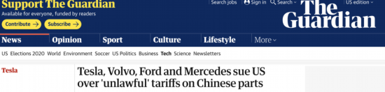《卫报》报道,除特斯拉外,沃尔沃、福特及梅赛德斯-奔驰也已对特朗普政府提起诉讼,以阻止美国政府对从中国进口的物品随意征收关税。