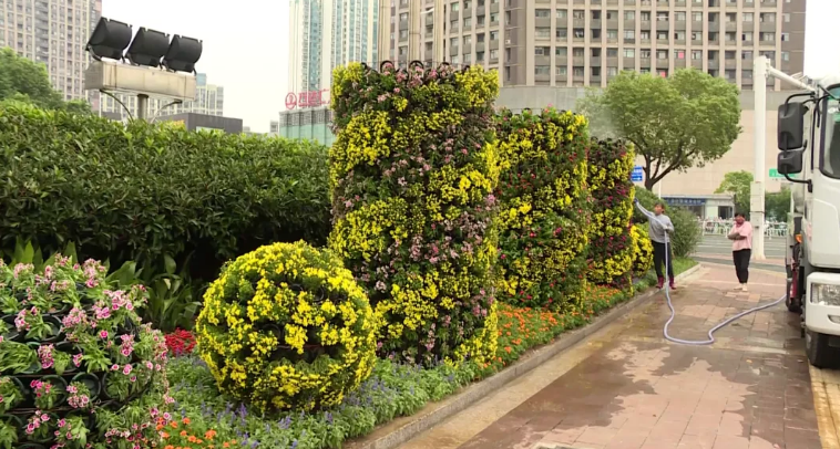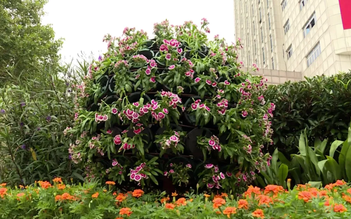 在清江浦区水渡口广场附近,园林工人们正在绿化带上维护刚刚完成的立体组合花坛。据了解,为迎接节日,市园林部门在设置立体花坛的同时,还对淮海东西路、和平路有轨电车沿线的花箱进行了更换布置。
