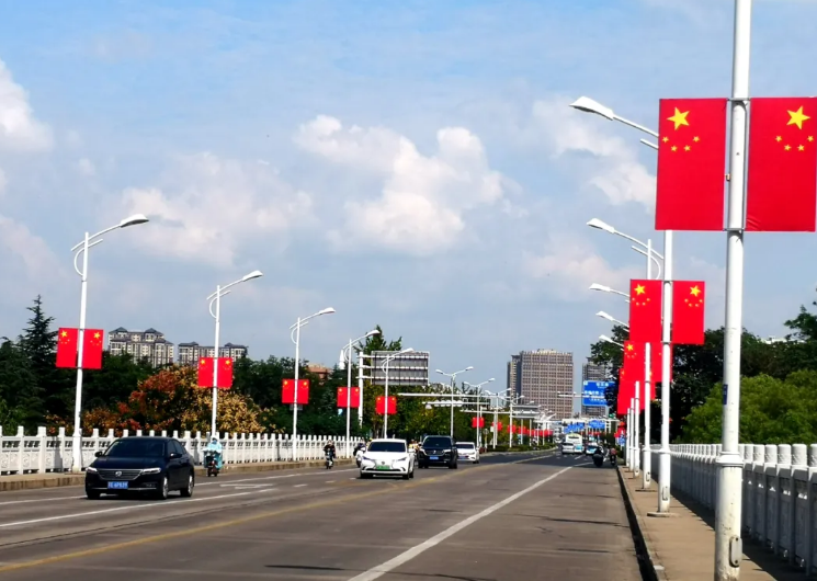 同样,在淮阴区翔宇北道,近千面五星红旗也悬挂在道路两旁,将整条道路装扮的庄重热烈,激发了人们的爱国情怀。“到处都是飘扬的五星红旗,身为中国人,民族自豪感在心里油然而生。”市民郑师傅说。