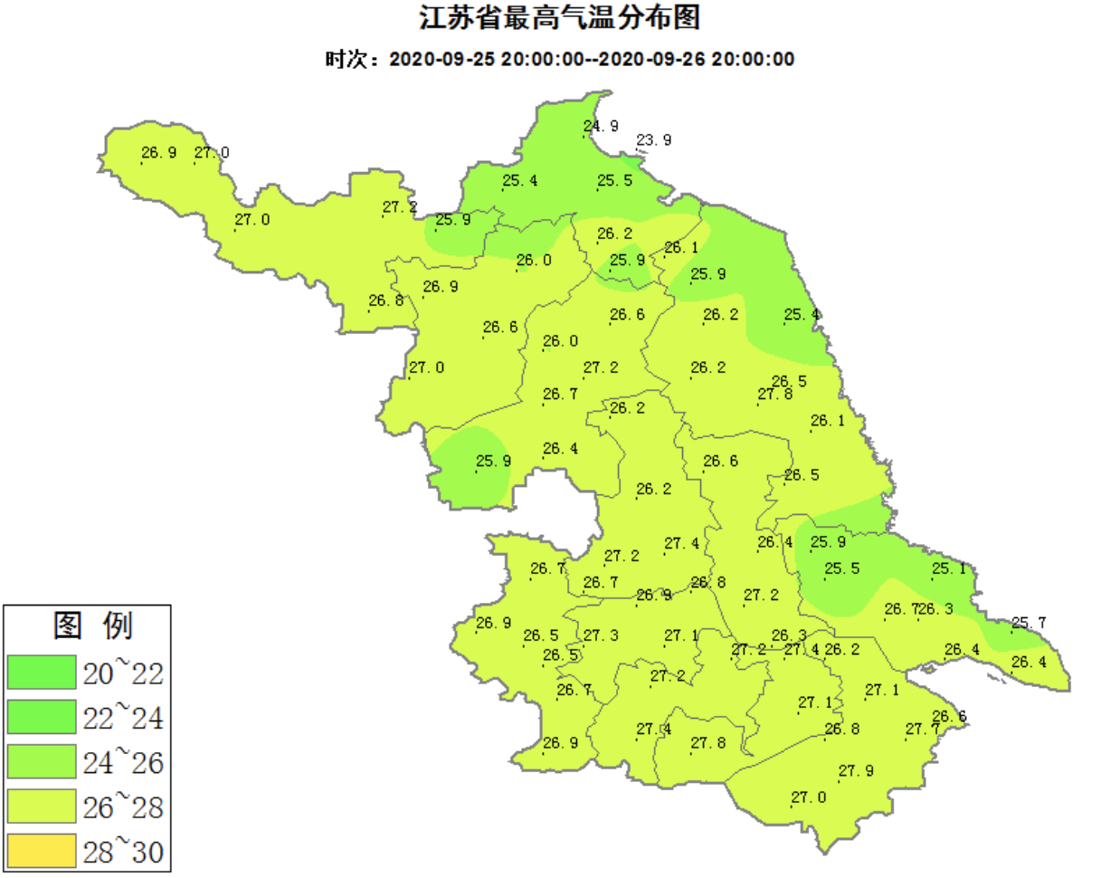 最近全省大部分地区的最高气温稳定在25-27℃左右
