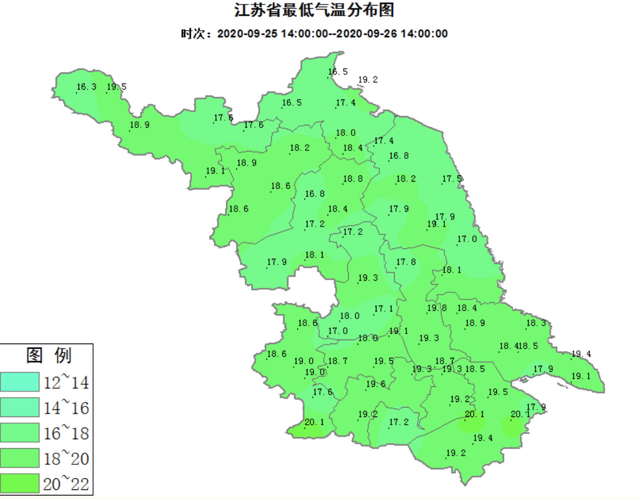 而最低气温则基本在20℃以下