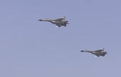 运-20进入中国领空后,两架歼-11B战机护航伴飞。