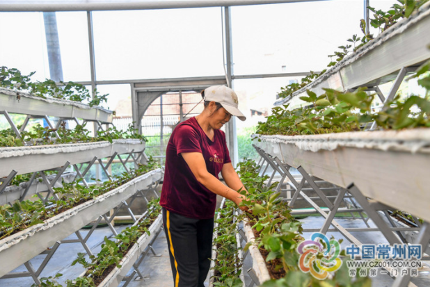 9月26日下午1点,常州市新北区叶家村的叶家草莓园里,杨定英和几个老乡正在忙碌。草莓园新搭了泡沫槽,杨定英他们正在把营养基质倒进槽里,为即将栽种草莓苗做准备。每天6点多到草莓园,忙碌一天,踏着夕阳回家,想到再过两个月亲手栽下的草莓苗就要结果,杨定英想想都开心。