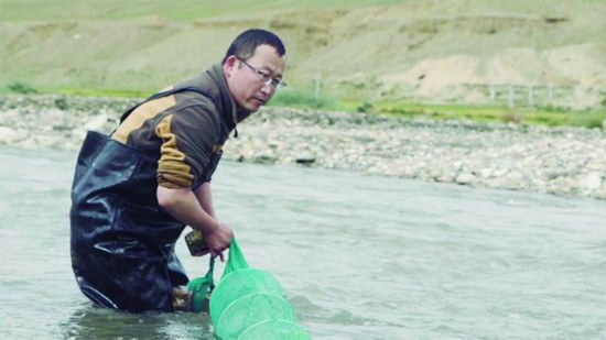 刘海平在雅鲁藏布江进行采样和资源调查。西藏农科院供图
