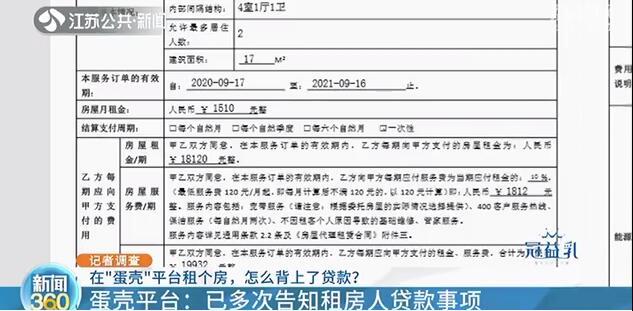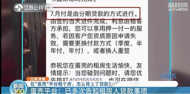 那么,事实是否如程女士所说,她是在不知情或者没有警觉的情况下被贷款了呢?26日上午,记者和程女士一起找到了蛋壳租房平台位于南京南站的这个办公点。工作人员明确表示,押一付一是宣传方式,最终操作结果是:程女士租房的第一个月确实是押一付一,当年随后的11个月,则是逐月向贷款机构缴纳租金和利息,而蛋壳平台则一次性地收取了全年房租。