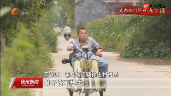 丰县常店镇徐庄村村民 于波波:刚开始不想去,后来老说工作环境好,我车子也能过去,地方宽敞,也都是残疾人,来好几回,我就说去看看去吧。我妈带我就去了。