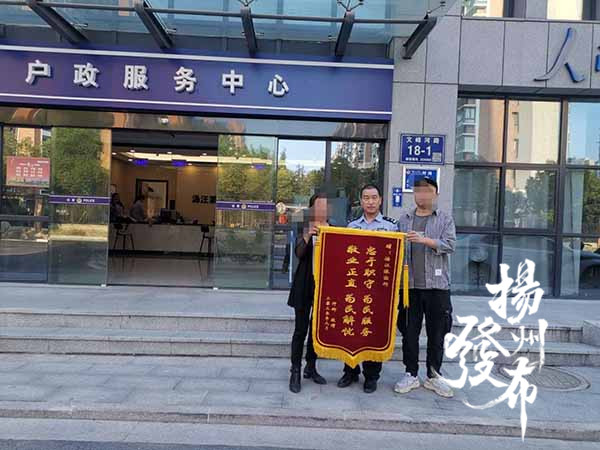 9月24日下午,仲女士和小张向民警仲怀青赠送了“忠于职守为民服务 敬业正直为民解忧”的锦旗,感谢派出所帮助其儿子解决了困扰20余年的无户口难题。
