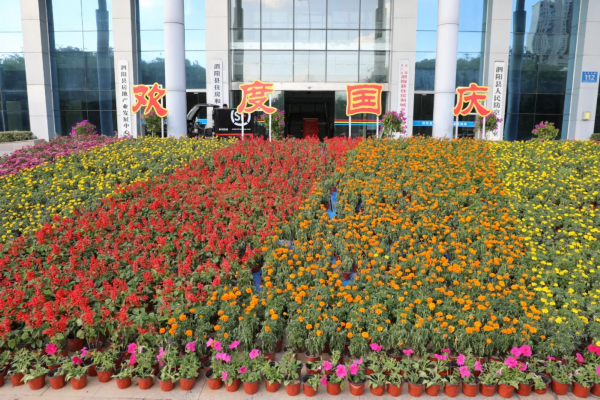 县园林中心于9月20日起,在城区各公园、道路等重要节点进行鲜花布景,此次摆放的鲜花品种有一串红、孔雀草、鸡冠花、国庆菊等,摆放鲜花共计约4万盆。
