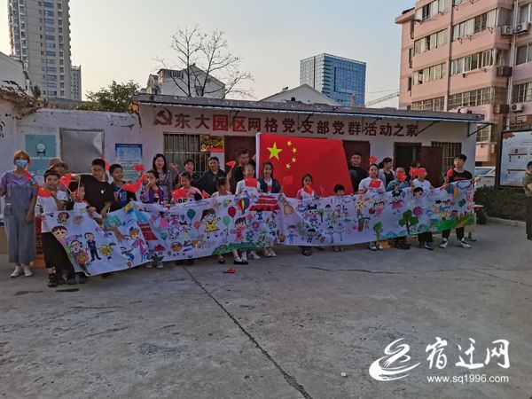 26日下午2时,在宿城区幸福街道东大社区东大园小区里,一群孩子在老师、家长的陪伴下,一笔一画地在画布上描绘着心中的愿望:国旗、气球、天安门……不一会儿,一幅幅充满童趣的画卷呈现在大家眼前。这是东大社区以“花季护航·童心颂祖国”为主题,在开展庆国庆迎中秋创意涂鸦绘画活动。
