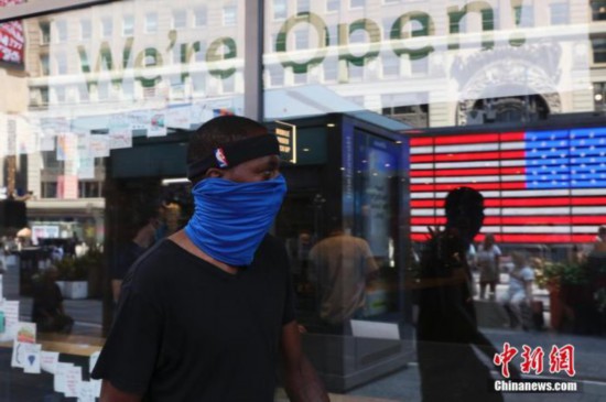当地时间8月9日,美国纽约时代广场的行人。
