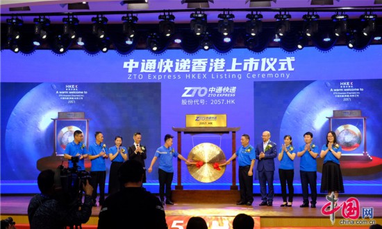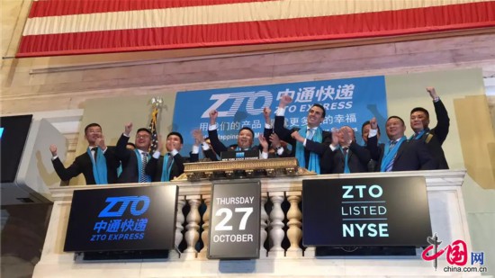 2016年10月27日,中通快递成功登陆美国“纽交所”,成为首家在美国上市的中国快递企业,创当年美国证券市场最大规模IPO。