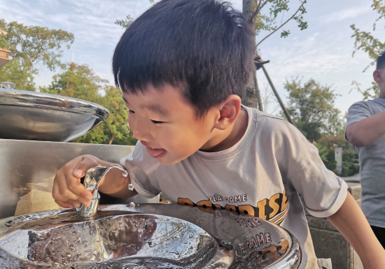 “甜甜的,像喝纯净水一样。”一位在直饮水机喝水的小朋友说,这几天和朋友来游玩,渴了也不用担心出门忘带热水,公园里就可以喝上干净的水了,安全卫生又特别方便。