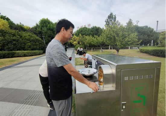 直饮水设备整机为不锈钢材质,设计为二饮水位,高低盆结合,高盆为成年人专用,低盆为儿童专用,24小时供水。直饮水设备的水全部为过滤后的纯净水。同时,对直饮水设备进行水质监测,并根据使用频率和水质情况更换滤芯设备,保证出水始终符合健康饮用标准,方便周边居民和过往游客随时饮用放心水。此外,金龙湖街道办事处在人流密集、停留时间较长的徐州高铁站前广场也增设了直饮水机,为高铁职工和过往乘客供应健康、便捷的直饮水。