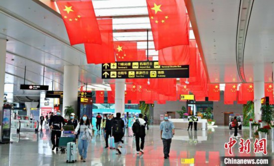 资料图:中秋、国庆双节临近,广州白云机场旅客逐渐增多。广州白云机场供图