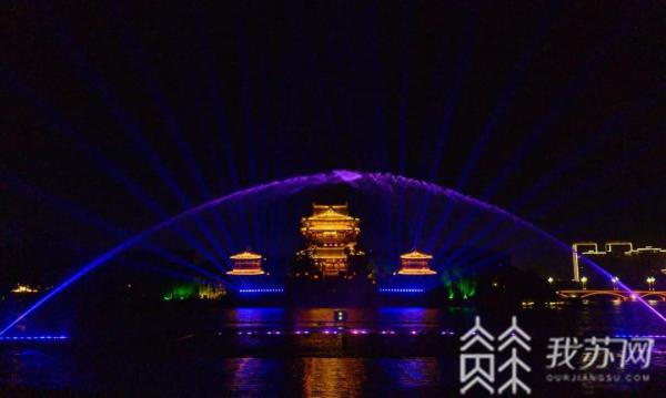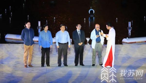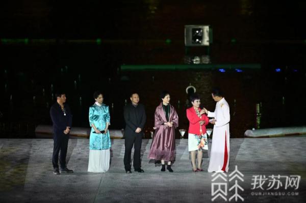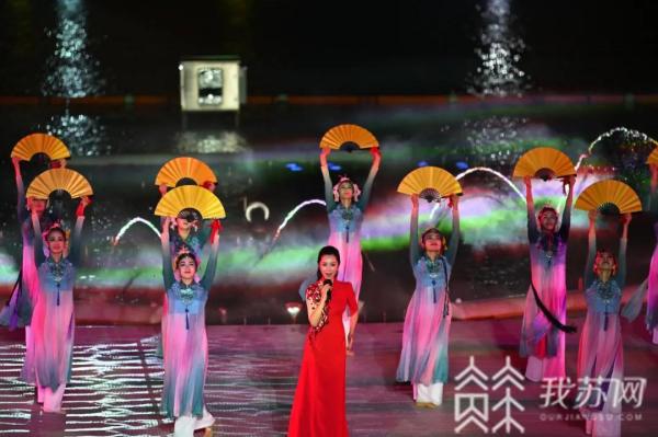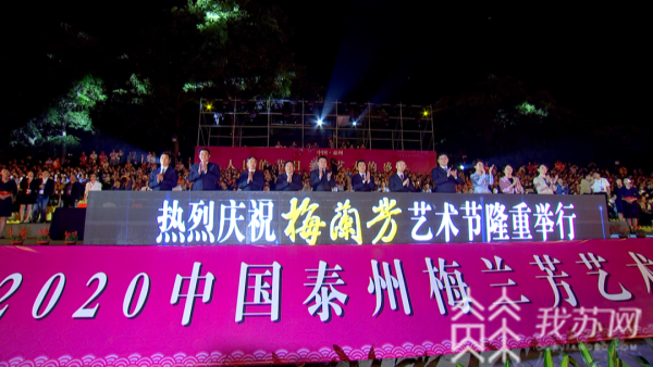 我苏网讯 2020中国泰州梅兰芳艺术节开幕式28日晚在泰州凤城河的水上舞台举行。