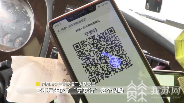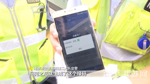 正在验码的南京市交管局高速二大队交警告诉记者,驾驶员出示"宁安行"健康码后,他用警务通扫一下。“现场这辆车生成了这个绿码,就可以正常放行了。”
