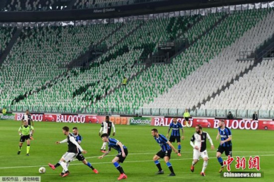 图为当地时间2020年3月8日,意甲尤文对阵国际米兰的比赛空场进行。