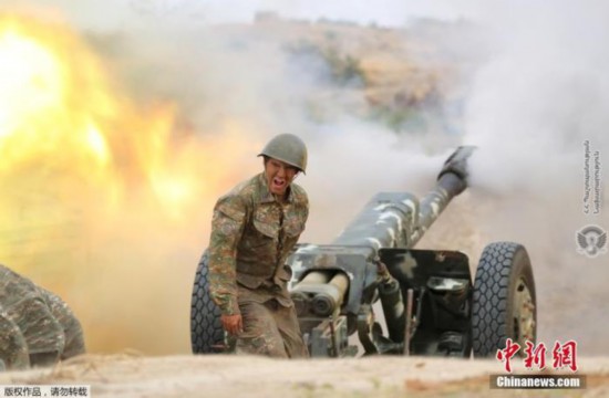 当地时间9月29日,亚美尼亚国防部发布的一组前线照片中,士兵正在发射炮弹。近日,亚美尼亚和阿塞拜疆在纳卡地区的冲突持续,已导致包括平民在内的数百人伤亡。