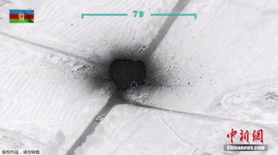 当地时间9月29日,阿塞拜疆国防部公布的画面中,据称是阿塞拜疆武装部队在纳卡地区摧毁了一个装甲军事设备。(视频截图)