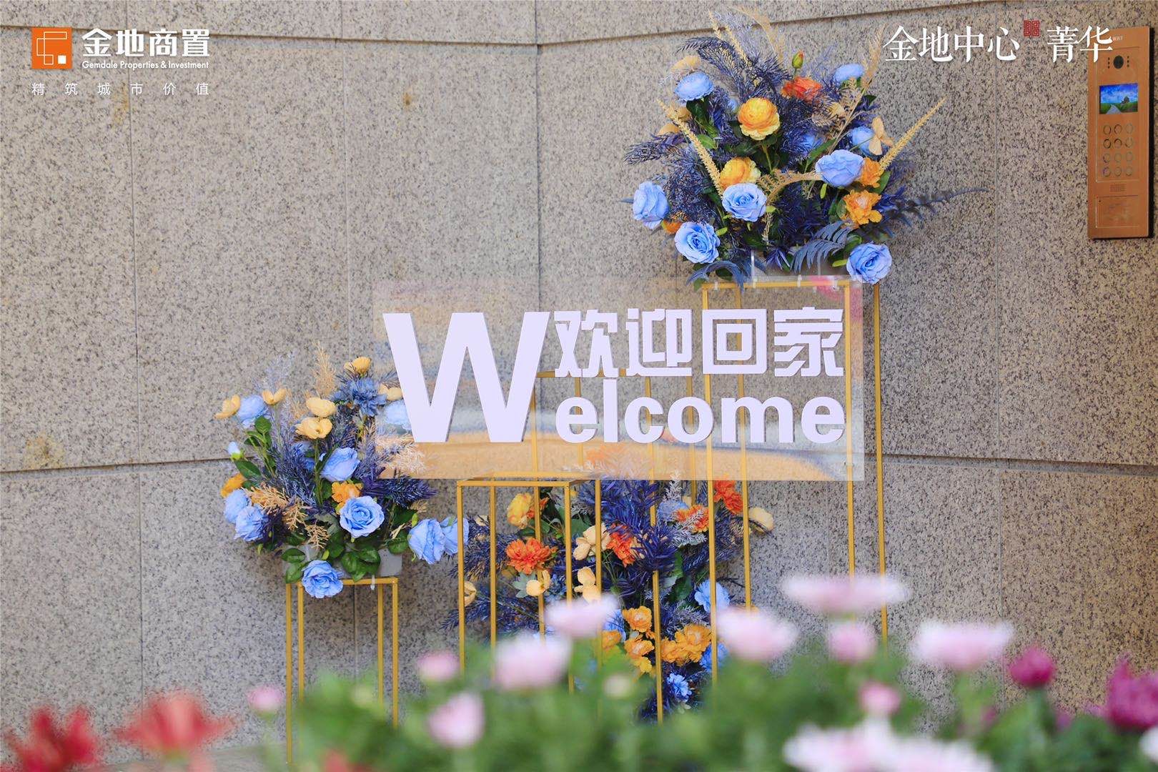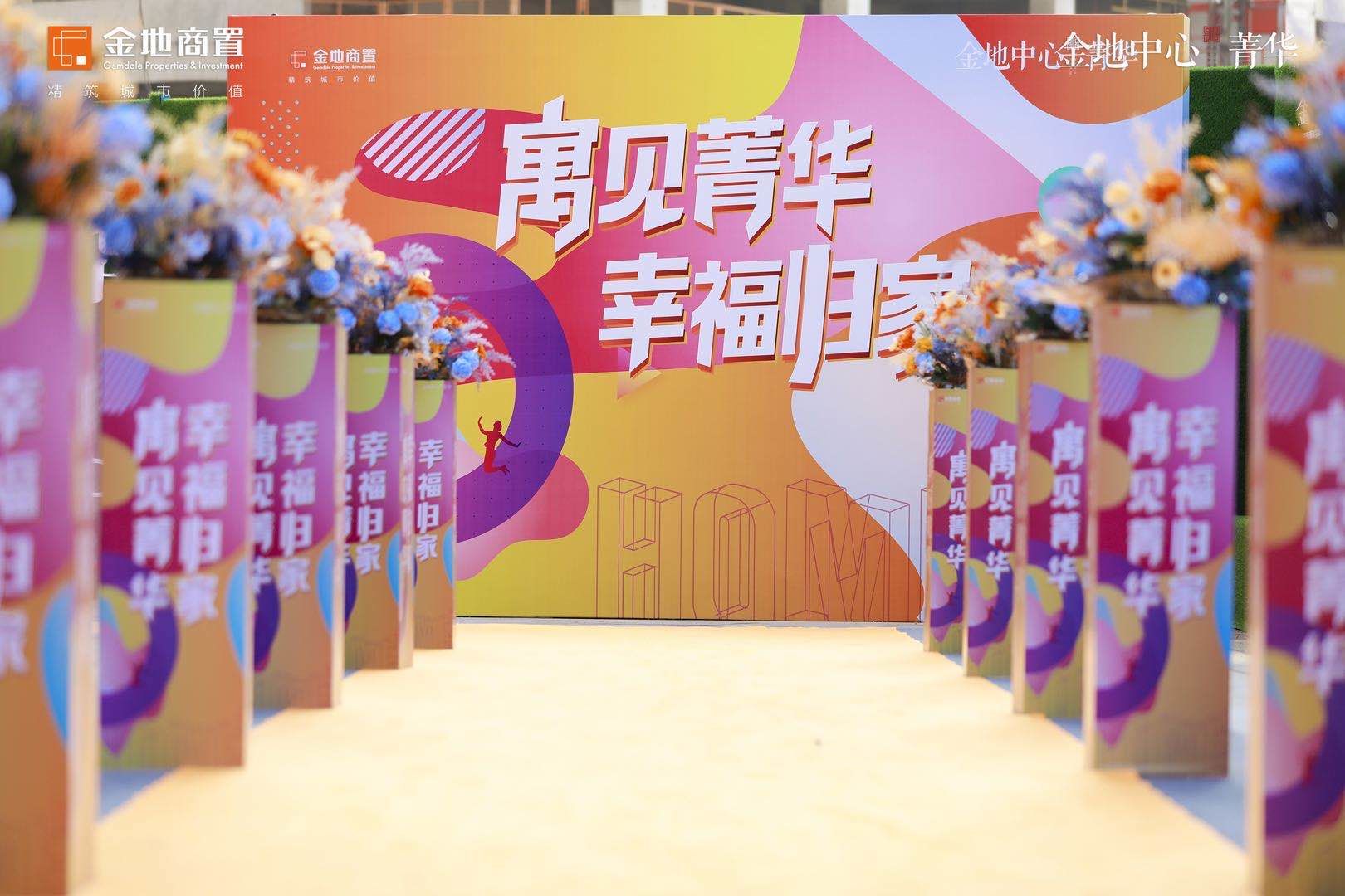为了让归家之旅充满温馨,金地中心菁华交付现场每一处都经过工作人员精心布置,现场以锦旗作引,以红毯铺路,缤纷的鲜花,暖心的祝福语,无一不体现金地商置细致与认真。