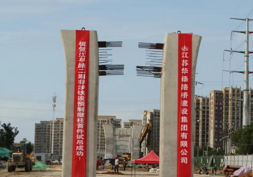 装配式墩柱精度要求高,要求误差不超过2毫米,这对墩柱底部的44个套筒、预埋地基的44个钢筋点建造来说,十分困难,一次次试验都不理想;而异型墩柱的制作和吊装也不容易;吊装时采用什么样的连接材料,更是摆在了人们面前……但扬州住建局市政建设处的专家和江苏华泰的科研人员并没有被困难打倒,在加大科技攻关的同时,又请来东南大学的教授现场进行技术指导。采用定型模具进行控制,使用专用的灌浆材料……一个个技术难题被攻克,今年7月,墩柱在工厂正式投入生产。