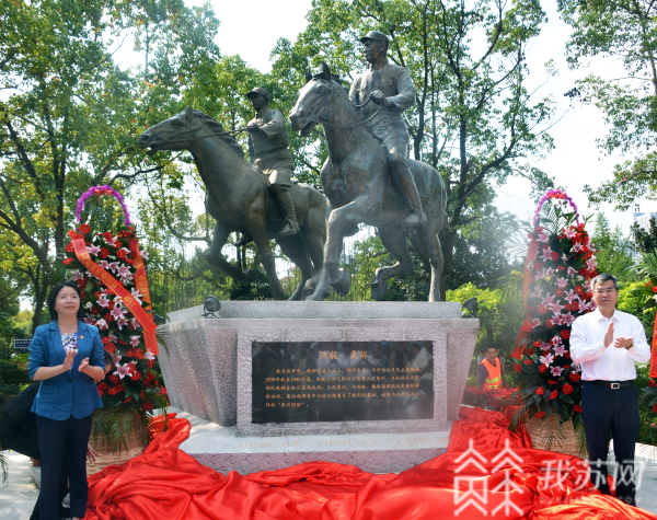 我苏网讯 今年是陈毅“三进泰州”谈判成功80周年、黄桥决战胜利80周年,9月30日,陈毅、粟裕塑像在泰州凤城河畔新建的东进广场揭幕。泰州市委常委、宣传部部长刘霞,副市长徐克俭为塑像揭幕。